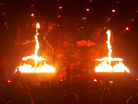 Nem bántam meg, igaz loholnom kellett, de kifogtam egy gyors sort a bejutáshoz így még az Anthrax előtt helyet foglaltam. Anthrax nekem nem nagy kedvencem, szóval nem is véleményezném. Amit láttam az rendben volt, ellenben amit hallottam a 116-os szektorban az nem. A dob hangzása, az egyik dobnak olyan paff-os hangja volt (talán a pergő), féltem Slayer-re is ez marad. Sajnos maradt is egy darabig. Viszont a Slayer nem csak hangerőben de látványban is olyat adott, hogy az maga volt a csoda. Ahogy "játszottak" a fényekkel, a piróval.