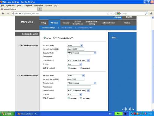 Linksys EA2700 routerem van, a wifi beállításai a következők (értelem szerűen jelszó is be van állítva):
