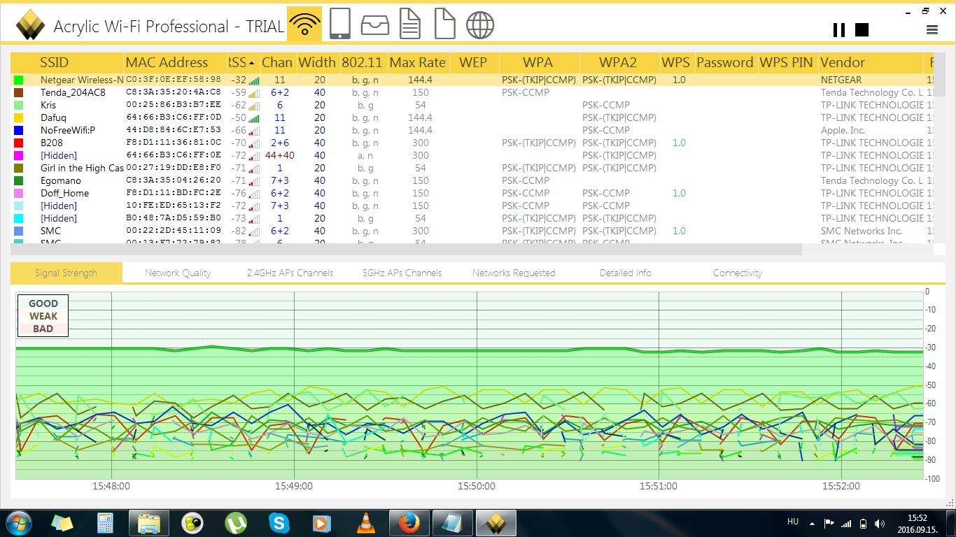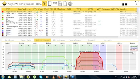 Ezek közül kellene az egyikkel csinálni egy mérést a helyi viszonyokról és képernyőmentés berakni a 2,4 GHz-s csatorna képről.