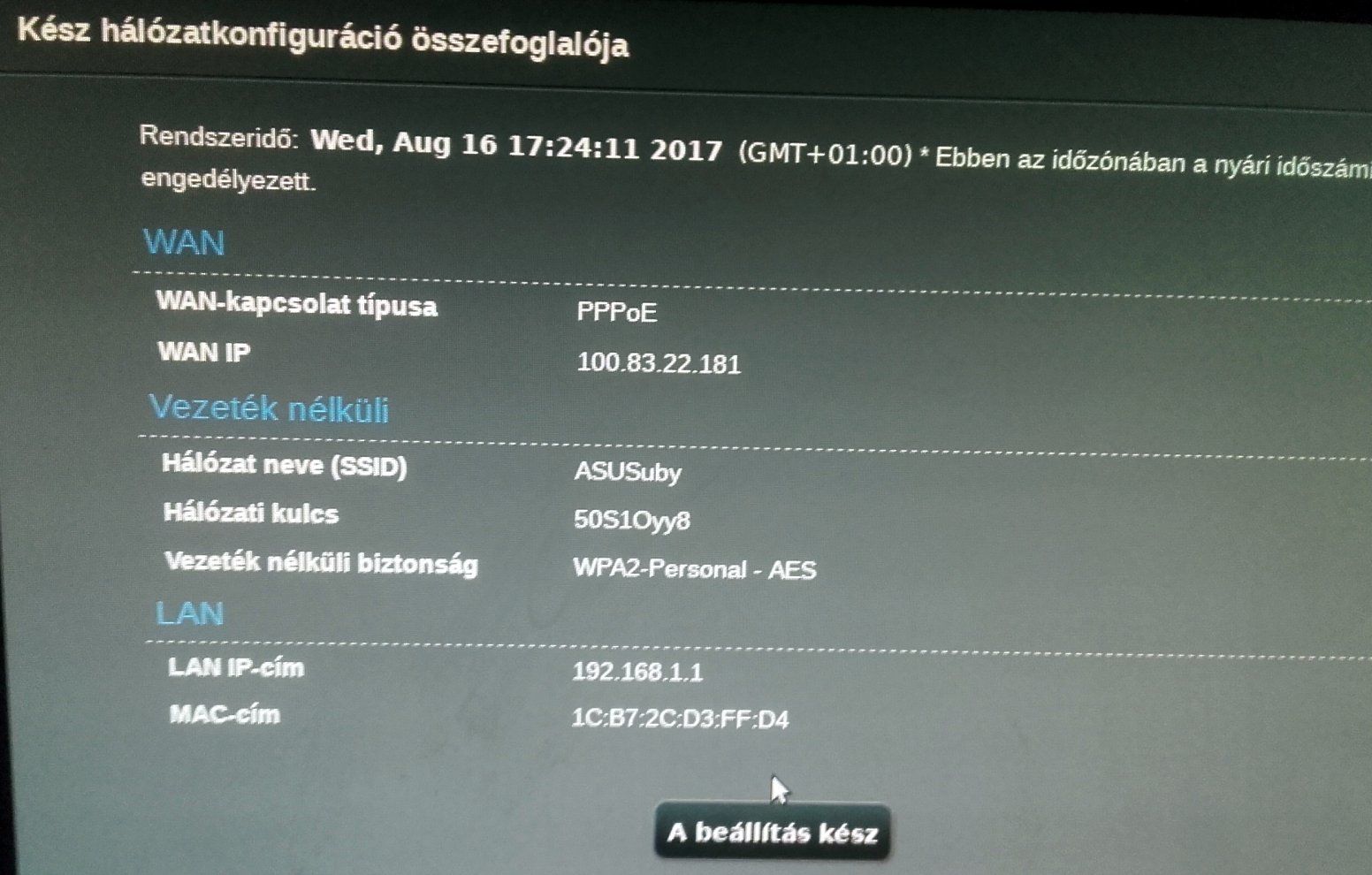 Azt írja itt, hogy kész, de utána mindig feljött az a sárga felkiáltólej a nem megfelelő wan ip címről!
