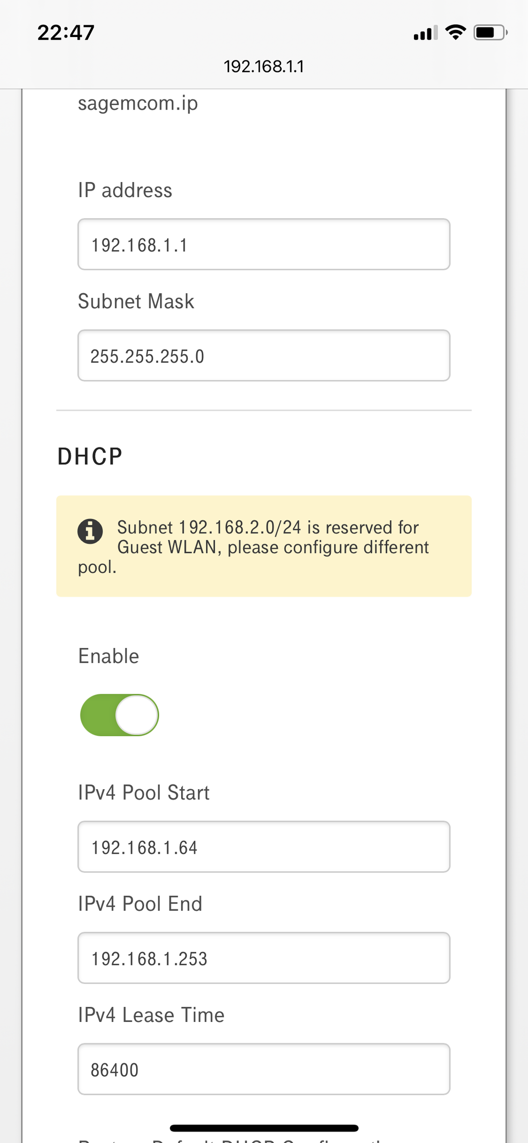 Vagyis Tenda: DHCP = Off, LAN IP cím Fix, a Sagemcom DHCP által engedélyezett címtartományon kívülre, PC-n egy másik Fix IP cím beállítva, ugyanabból az alhálóból ?
