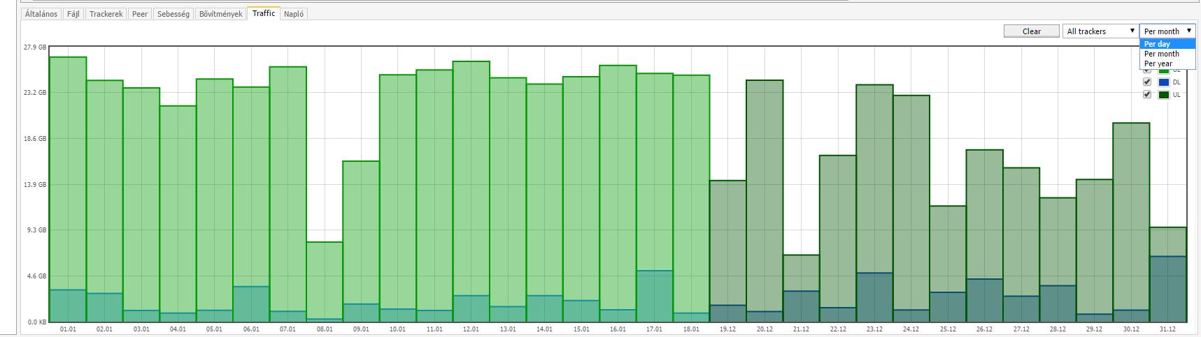 Ha letöltök például egy 1GByte-os tartalmat, akkor a rutorrent traffic plugin-jában legalább 2GB-i letöltött tartalmat jelöl, de volt már, hogy 3 kisebb torrentből (összesen 800MByte) összejött 3GByte-nyi forgalom, tegnap volt egy kis időm, figyeltem a forgalmat, és tényleg úgy tűnik, többet tölt sokkal mint ami lejön. Deluge-vel volt hasonló problémám, ott a kliens hibája okozta a dolgot.