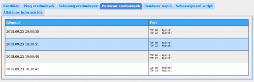 Én erről beszéltem "Portscan eredmények", ez fél óránként lefut. A ping percenként, a sebesség mérés óránként (viszont 17 órától nincs sebesség mérés).Még egy érdekesség, most a naplóban a "firstlogin.sh" script fut percenként cron-ban.