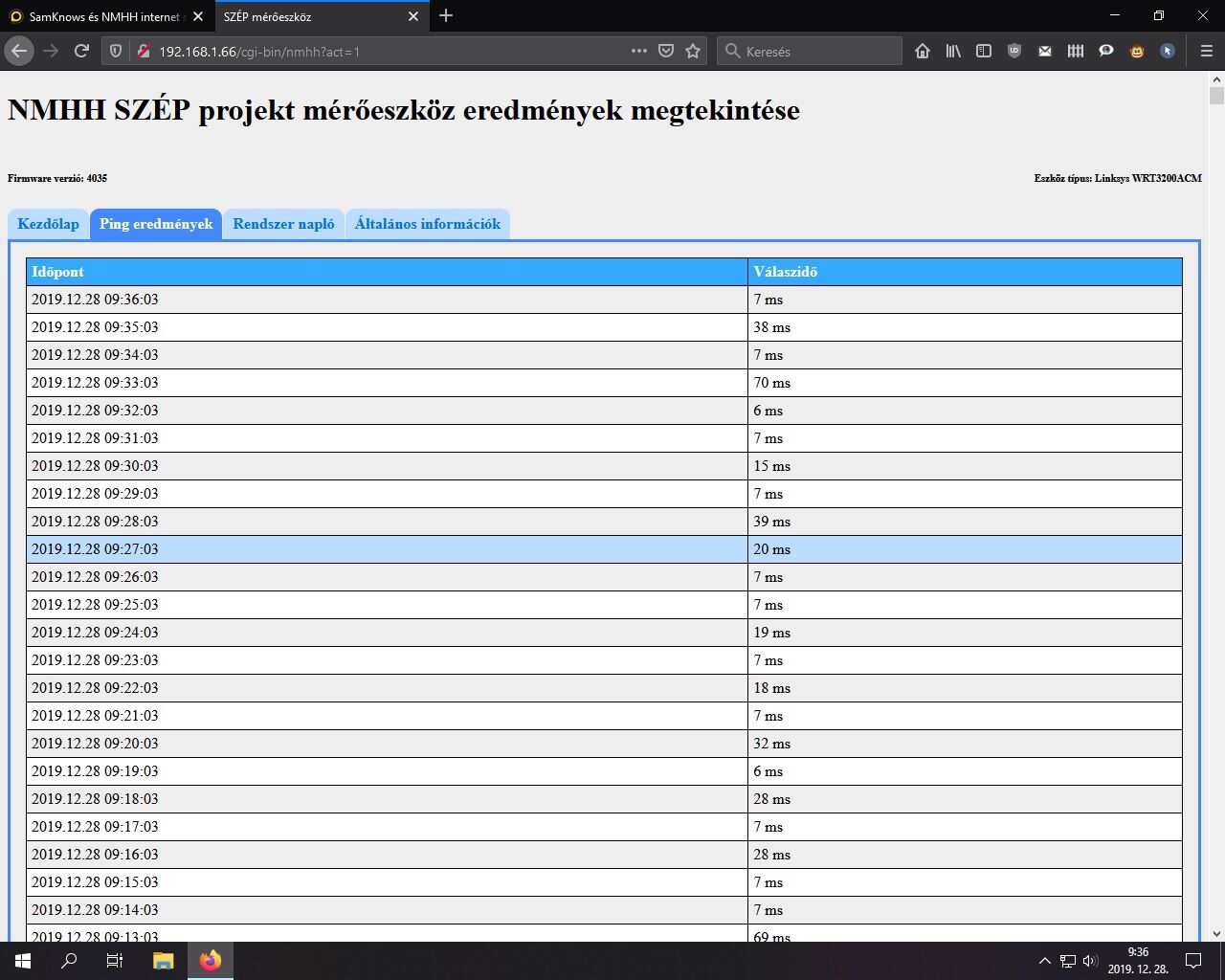 Nektek milyen fw verzió van a boxon? Most vettem észre hogy nincs csak ping mérésem 15.-e óta. A sebesség és a port oldal nincs is. Az oldalon sincs csak ping mérésem.