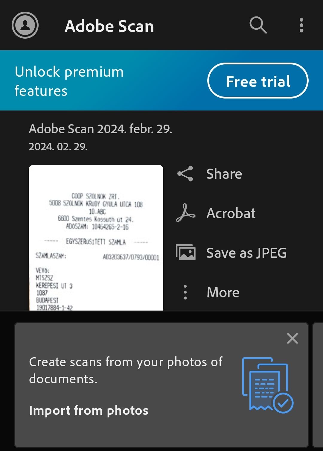 Én is az Adobe Scan-t használom. Megéri regelni. Belépsz számítógépen is az Acrobat readerbe, s a telefonos scan után szinte azonnal beszinkronizálja, s elérhető a doksi. Microsoft Lens-t is próbáltam, de ott kevesebb a beállítás.