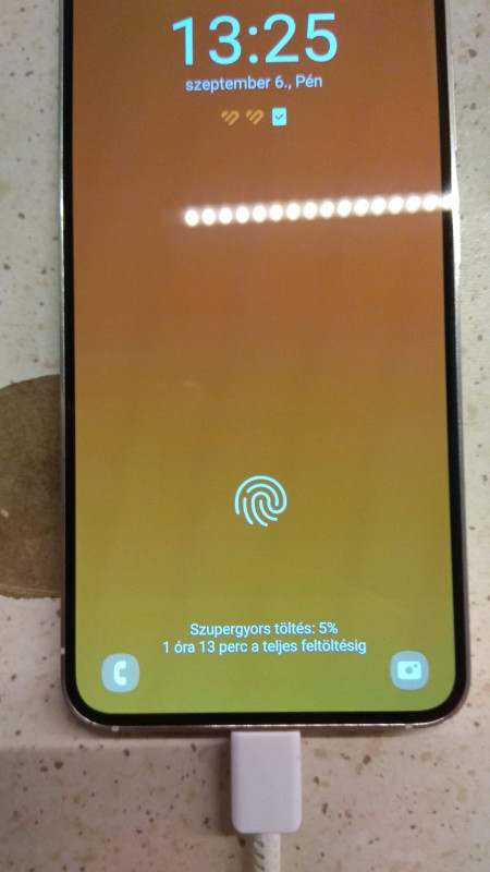 Első versenyző a Samsung szupergyors 25 vattos töltője. Telefonra rádugva ez a kép fogadott: