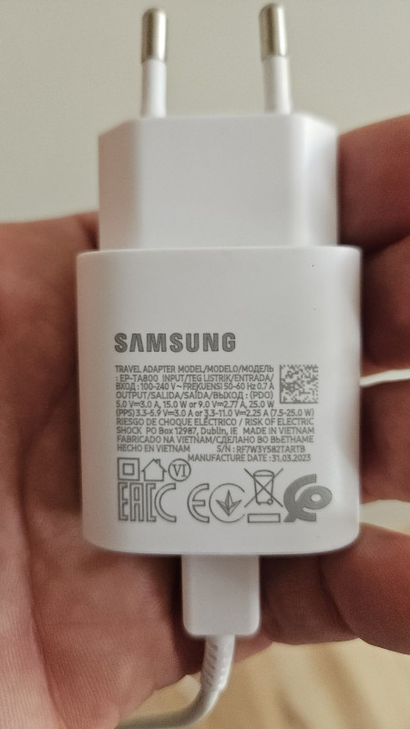 Ezen kívül hordok magammal egy szintén Samsung 45W-os adaptert, a hozzá adott kábellel, arra az esetre, ha nem otthon kellene "megetetni" a telefont és azt gyorsan kellene. -