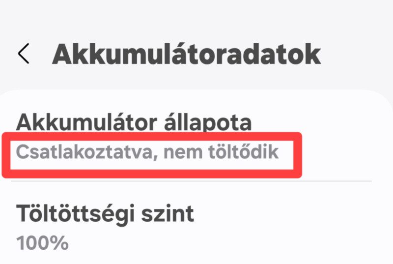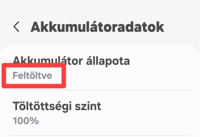 "Tehat diohejban az van, hogy nem 1%-ot esik es visszatolt 99-rol 100-ra, hanem 100%-on lekapcsolja a telefon energiafelvetelet az akkumulatorrol, es csak kabelrol veszi fel ebben az esetben."