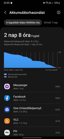 Közben feleségem is kapott egy S23-at. Folyamatosan nézem az akku idejét, 6-7óra SOT, 1,5 nap üzemidő. Stabilan, mindig. Felraktam hozzá az összes nem vagy furcsán viselkedő appomat, hibátlanul fut. Az üzemidő ugyan az maradt. Értesitések jönnek rendesen.