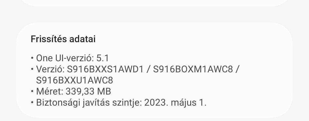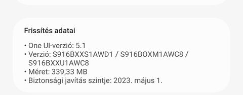 Nekem ma dobott fel egy frissítést a rendszer. Ez még az augusztus 1. biztonsági frissítés. Van valami extra benne a biztonsági frissítés mellett, mert 1,2 GB. (S23+).
