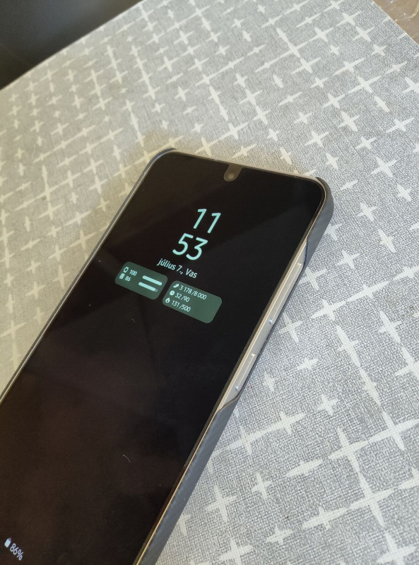 Az akksi nagyon jól bírja, kellett neki jó egy hét mire beállt. AccuBattery szerint most 4119 mAh a számított kapacítás, az én használati szokásaimmal kb. 6 óra 40 perc a képernyőidő 100%-ról 14%-ra. CPU max 70%, fényerősség 10% csökkentés bekapcsolva, AOD-t és Health meg ilyesmit nem használok, 1 SIM, 2D-s játékokkal szoktam játszani, azon kívül Facebook, Messenger, YouTube ilyesmik.