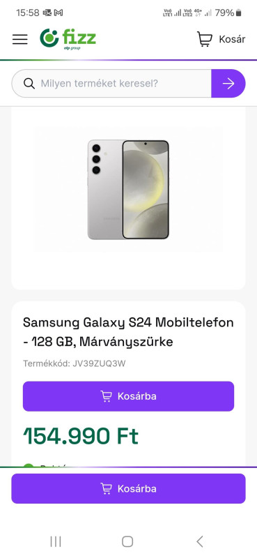 Az oldaluk alapján az S24 sima szürke színben 155ezer Ft