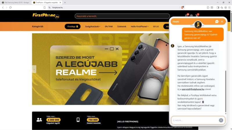 A FirstPhone-nál minden új Samsung készülékhez jár a gyári garancia, így biztosított a hivatalos szervizháttér. Ha bővebb információra van szükséged a garancia érvényesítéséről vagy a szervizelésről, írj a szerviz@firstphone.hu címre! ..." -