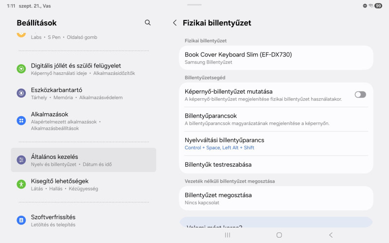 A tab s9-hez volt nekem billentyűzetes tok, ehhez nincs de a beállítás gondolom ugyan az. Ne a rendszer billentyűt állítsd, hanem a fizikai billentyű kiosztását. Lehet külön annak is állítani. Sajnos már nincs meg hogy meg tudjam mondani pontosan hol van. Az a lényeg hogy a fizikai billentyű kiosztását is tudod módosítani és neked azt kell.
