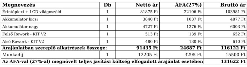 Faxa árajanlatot kaptam: "Szervizünk a készüléket bevizsgálta és megállapította, hogy a telefont ért mechanikai hatás következtében a kijelző sérült"