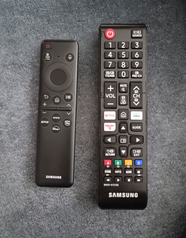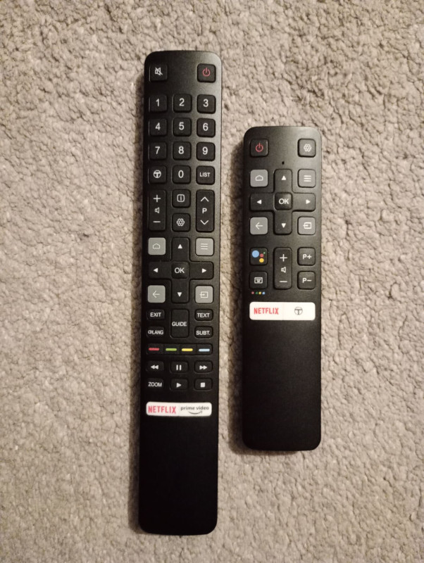 Végre jött egy (számomra) normális távirányító a gyárilag csomagolt helyett. A kép jobb oldalán. Én ezeket jobban kedvelem.