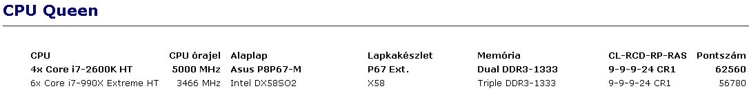 Egyébként SzlobiGvel tegnap volt egy kis eszmecserém az i7-2600 vs. i7-920 témában, valamiért neki 4.2GHzen jobban muzsikál, mint az enyém 4Gn, pedig papírforma szerint nem kicsit kellene elvernie Szandinak..legalábbis DM11ben ez volt a helyzet, azonos VGAt/órajelet feltételezve..a RAMja gyorsabb mondjuk, de ilyen szinten ennyit nem számíthat az 1333/9 vs. 1600/8 szvsz.