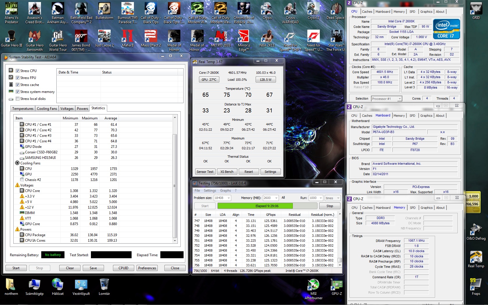 4600-on 1 óra Crysis 2 multi után (@1000RPM, a maxra 60 fok felett kezd el kapcsolni)