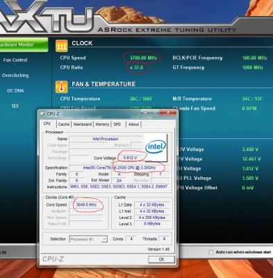 Azért H61-es lapban (Asrock H61M-U3S3), nem K-s i5-2500 procival is van némi "öntuning". Az elméleti 33-as szorzót magától felteszi 37-re.