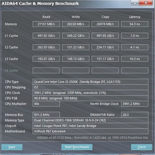 i5 2500k alap kingston hyperx 1600 alapMemória olvasás: 16093 MB/mp