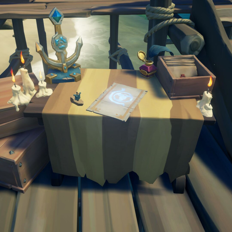 Ha aktív emissary van a hajódon, és elsüllyedsz valahogy, akkor az aktuális szintet veszíted el. De a zászlót csak egyszer kell megvenned, utána bármikor "felrakhatod" azt a hajódra ezeknél az asztaloknál: