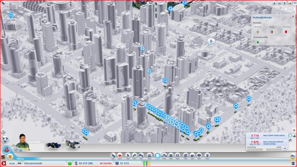 Nagyon hajtok a 75 ezer lakosra, hogy lehessen közmű hivatalom, ami után építhetek újrahasznosítót, amiből lenne olaj (nincs a város alatt) és műanyag, amivel tudna üzemelni a processzorgyár. Az ott gyártott termékeket exportálnám egy kis haszonért cserébe. Legalább a beruházás 160 ezres költségét visszahozhatná