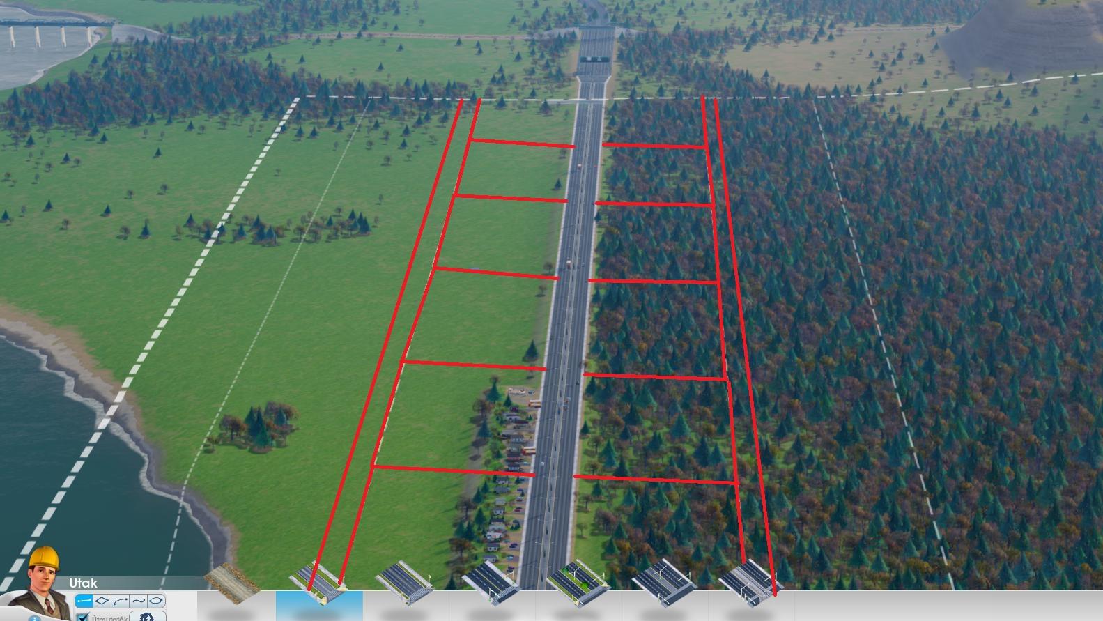 Keresgéltem egy kicsit, találtam egy képet egy jó úthálózatról. Látszanak a fő gerincek (ezek a villamossal ellátott utak), a többi pedig keskenyebb, de valószínűleg olyan utak, amiknél kimaxolhatóak az épületek (Mikor kiválasztod az úttípust, akkor a felugró ablak jobb alsó sarkában jelzi ezt három ikonnal)