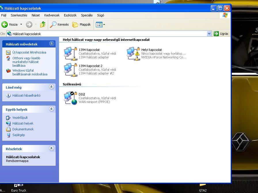 így néz ki a hálózati kapcsolatok, nem értem, hogy ez miért gond. Ha ez nem gond, akkor legyen valami hálózattal foglalkozó program: nekem az sincs, nfs worldbe nem kellett. A fórumokat elolvastam a simracewayen, de itt valami helyi gond van nálam, majd valamikor estefelé talán nekiállok, de így elment a kedvem, ez tök röhej így. Legalább tudnám, mi a gond forrása, de semmi ötletem sincs -