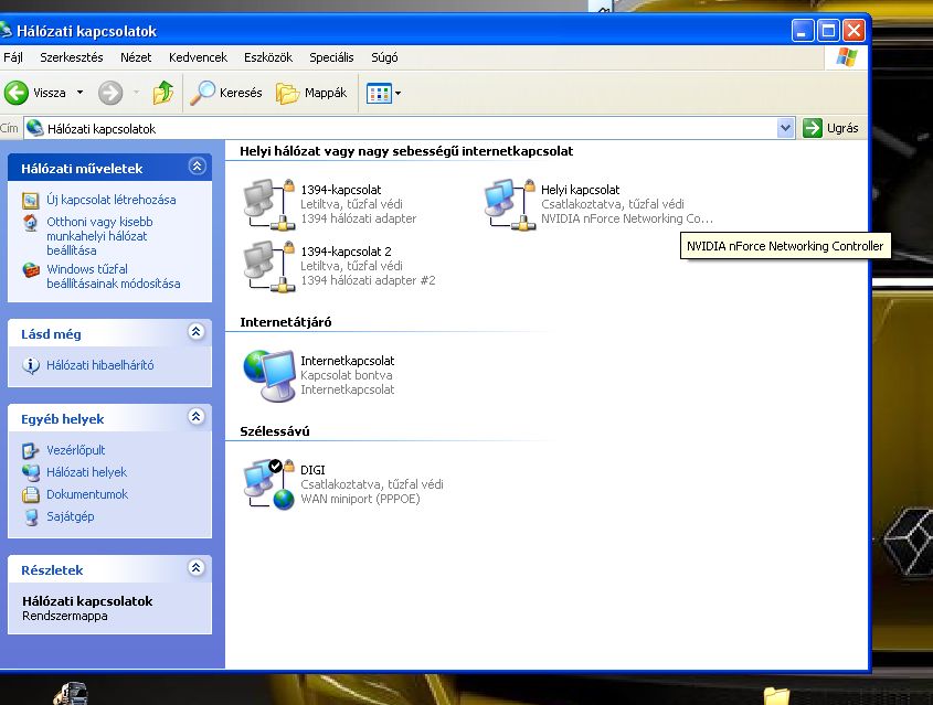 A belinkelt képen a jobb oldali hálózati kapcsolatok a szabvány itthon minálunk. Dupla kattintással mindig magam indítom a digit. A bal oldali képen van viszont egy plusz internet kapcsolatom, ami akkor is ment ma kora este, amikor a digit els se indítottam. Hogy fértem hozzá a nethez, ha nem a digivel fértem hozzá? Nem foglalkoztam sose ilyennel, nincs kábel, bluetooth, egyéb program se... Akkor lehet, hoyg ez a kettős kapcsolat egymást ütötte a játék közben? Mert hasonlóhoz vezethet, mint amire panaszkodtak sokan.... -
