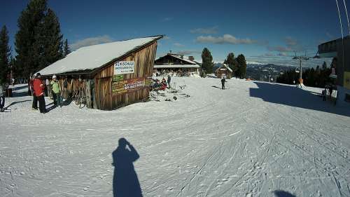 Az egyik borús, felhős hóesésben készült, a másik napsütésben