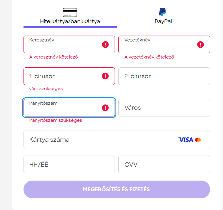Továbbá kér még irányítószámot és várost is, de nem értem miért.