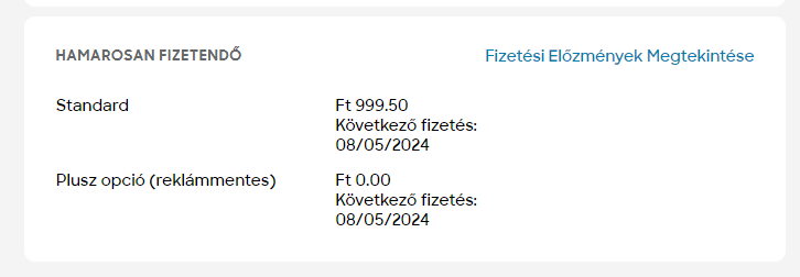 Ami viszont érdekes még mindig az az, hogy reklámmentes plusz opciót teljesen ingyenesnek mutatja, esetemben 2101. április 8-ig. A Standard előfizetést meg fél áron, 999,50 Ft-ért adja. -