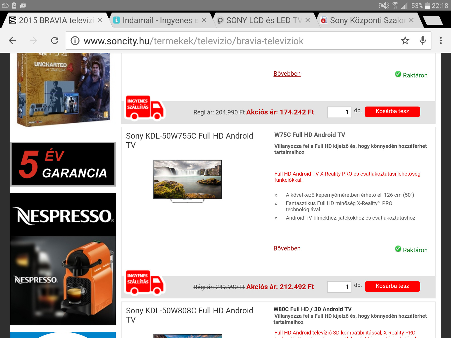 1 honapja vásároltam Kdl-50w807c tv-t.Eddig nagyon meg vagyok vele elégedve.