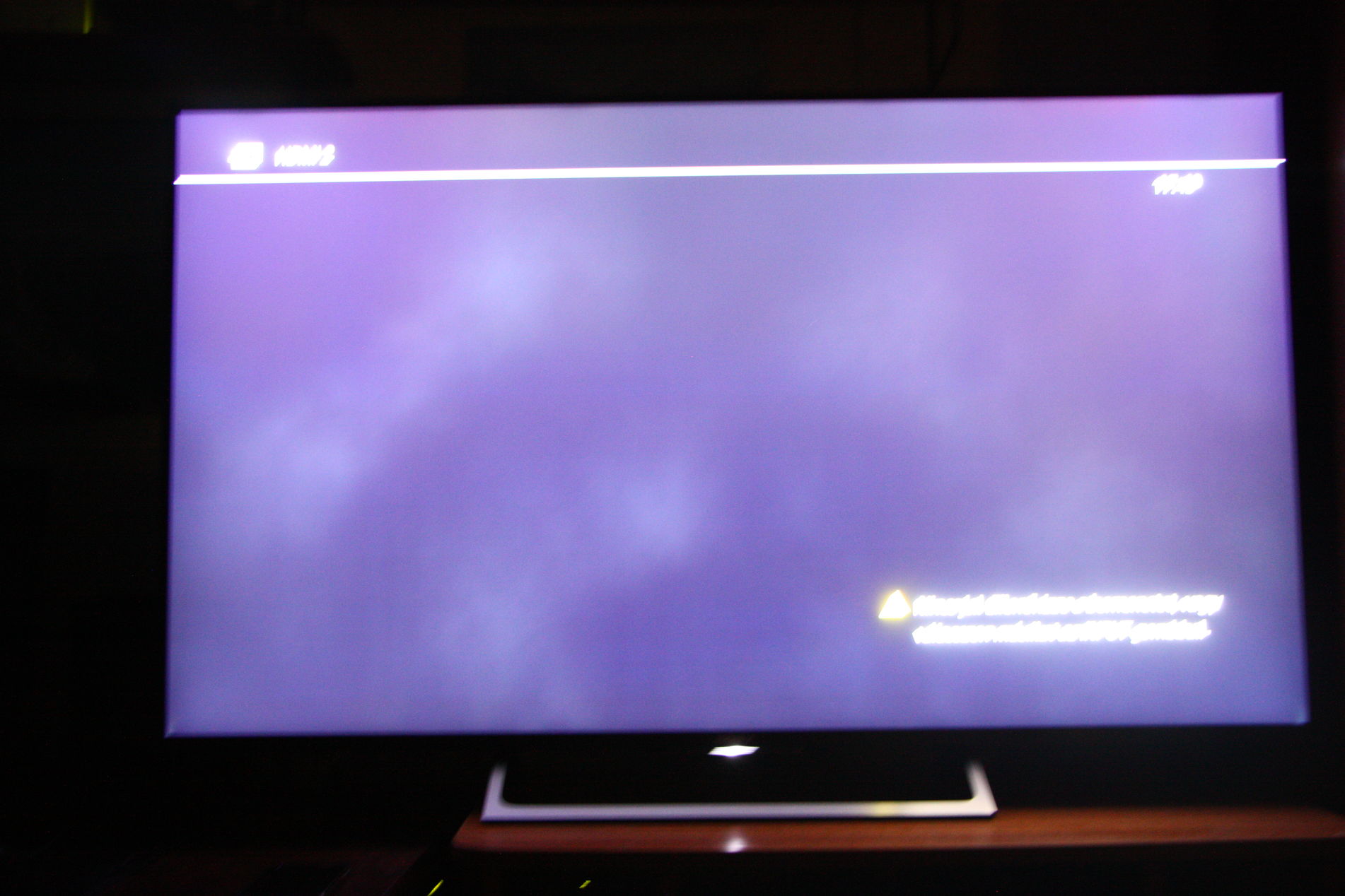 A csatlakoztatott PC sosincs kikapcsolva es csak egyetlen HDD van rakotve ami jol mukodik.Ennek ellenere tobbszor adta a hangot es ma reggel vegre belefutottam a hibauzenetbe is a jobb also sarokban: No Signal. Check the external input or select another input using the INPUT buttons