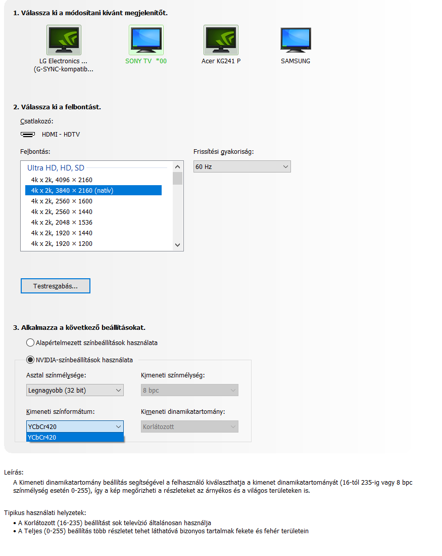 RTX 3080-amon pedig 3db DisplayPort 1.4a, 1db HDMI 2.1 csati van.Itt láthatod h YCbCr420-am van.