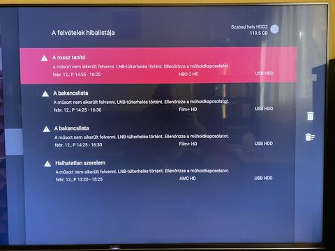 Minden variációnál ugyanaz történik. Látszólag elindul a felvétel (narancssárga, majd piros a led a TV alján középen) de rövid idő után megáll és nem készül felvétel. A manuális indításkor a rögzítési hibanaplóban ennyit látok. -