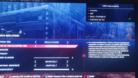 3. Hány Hz-en fut a kijelző?Itt egy Sony PS5 fut, konkrétan a God of War Ragnarok, amiben van 4K HFR opció, ami 120 Hz-en futna 40 FPS-el, vagy a VRR-el feloldott 40 FPS-el.