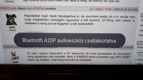 Én nem nagyon használom a BT fejesemet, de most kipróbáltam és semmilyen hang akadozást nem észlelek. Most a 43xf8505 tévén próbáltam egy AKG 845BT fejest, de hibátlan, még hang csúszást se érzékelek.