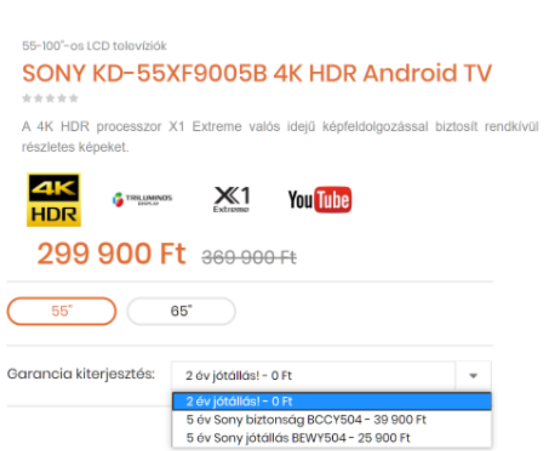 19 hónap van még a 2+3 éves garanciából. (+28.000Ft)Tudásban szerintem, amilyen szintet képviselt a 829B a SONY TV-k között 2014-2015-ben, most ez lenne a megfelelő Sony KD-55XF8596B 4K HDR Android TV..., legalábbis én egy ilyet kérnék, amennyiben nem lehetne javítani a mostanit vagy visszakérném a pénzt és Black Friday-kor (11.23.) keresnék, kis ráfizetéssel hasonló típust.