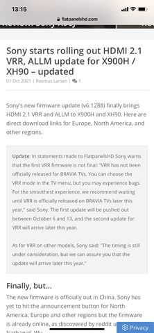 Nem mostanában hanem még év elején írta valaki,hogy az amerikai Sony oldalon lekerült a VRR funkció a specifikációk közül. Nos én megnéztem az oldalt és ha le is került csak időlegesen mert jelenleg szerepel a leírásban a VRR.
