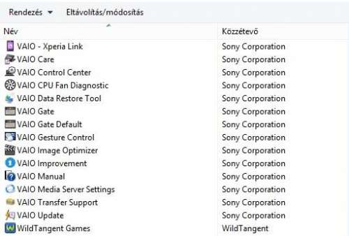Sziasztok! Egy Vaio SVE1112M1EW gépről letörölnék pár gyárilag telepített programot, amik szerintem feleslegesek (játék, próba verziós vírusirtó, stb.). Viszont a Sony-s programok közül nem tudom mi az, ami hasznos és vétek lenne törölni, és mi az, ami eltávolítható. Tudtok segíteni? Ezek lennének azok: