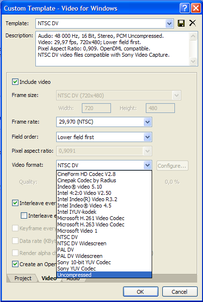 Ilyenem eredetileg nem volt a 7.0-ban a Template-ek között, és úgy emlékszem, hogy a "Video Format"-nál választható opciók közt sem addig, amíg fel nem tettem az INGYENES DivX cuccost, és nem csináltam saját template-et.