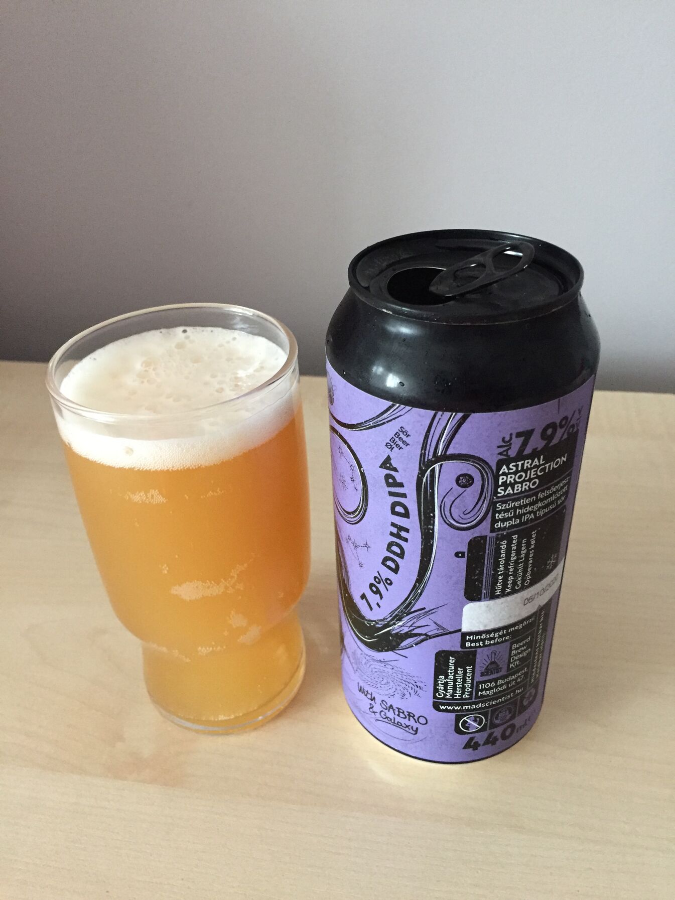 Mad Scientist-Astral Projection Sabro: Végre egy olyan IPA, ahol nem azzal kell kezdeni, hogy trópusi illat és ízorgia (amit egyébként imádok).Nem Citra,Centennial,Cascade,Chinook,Amarillo komlók, hanem Sabro és Galaxy.Illat is inkább virágos/földes, magvas, enyhén citrusos és nem a jól megszokott mangós,ananászos,papayás, maracujás ipa.Ízre is olyan kissé dinnyés és talán mogyorós, diós lecsengés, ízlett mert más, mint a többi, remek próbálkozás a MS-től