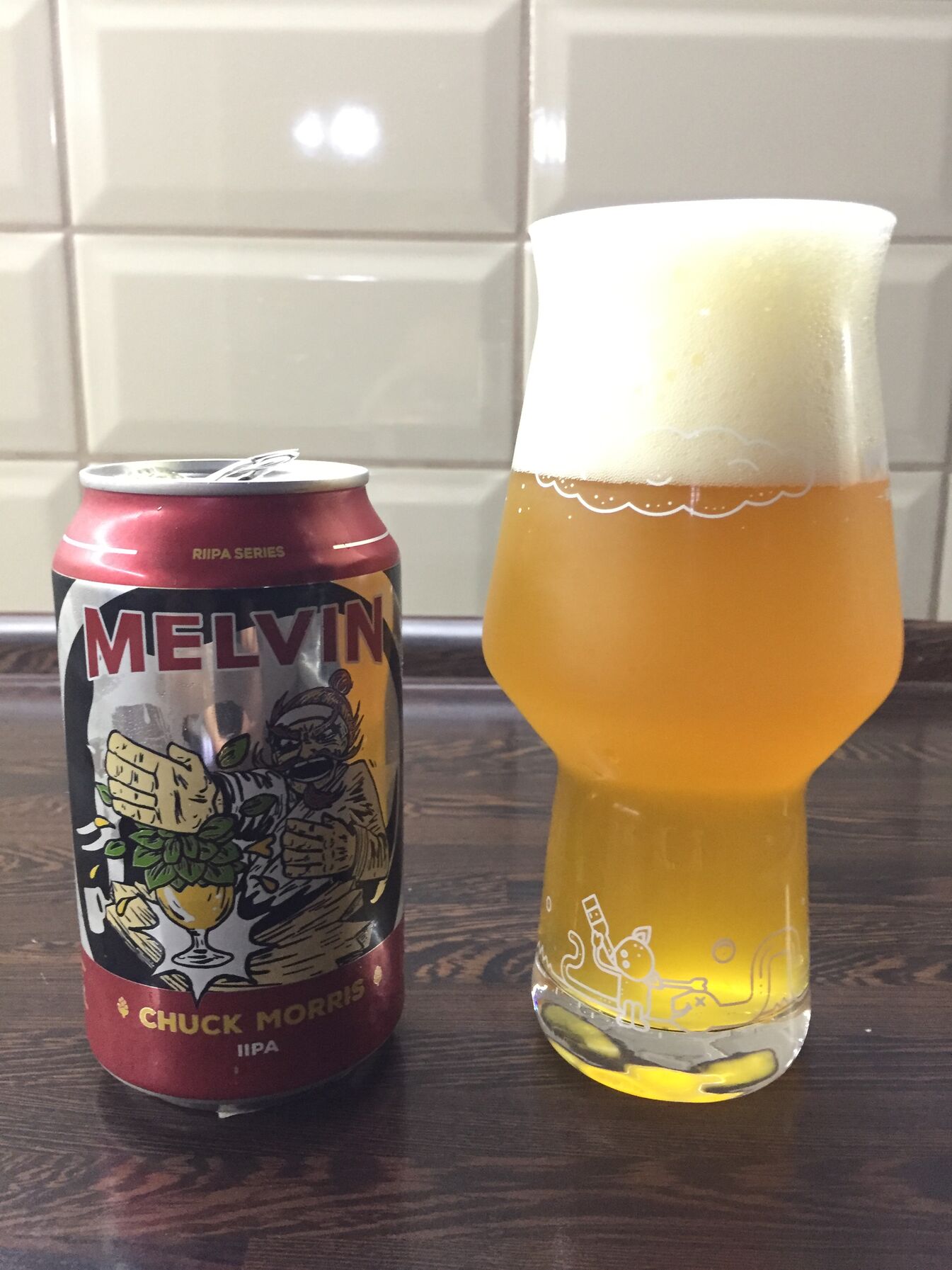 Melvinek ke is csússzantak, az ipa egy tisztességes iparos munka, a poppels dipa jutott róla eszembe, de ez utóbbi kiegyensúlyozottabb, harmónikusabb, Melvinnél kiérezni néha a 7,5% alkoholt. Illata iszonyat intenzív, konyhapultról felért az orromig, hozza a kötelezőt. Chuck Morris: világosabb sárga színű, 8%-os, visszafogottabb illat, de kellemes, sokkal jobban eltűnteti az alkoholt, mint az elődje, közelít a Neipakhoz, selymesebb, kifinomultabb íz, nekem egyértelműen jobban ízlett, mint az ipa, de egy NM vagy Finback szintet nem üti meg.