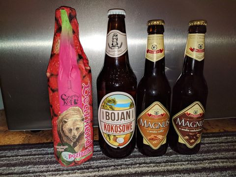 Vásárlás helye Carefour, Nowy Sacz, PL. A nagyüzemiek 2-5 zloty, a kézművesek (képen üvegben) 4-9 zloty. (1 zloty kb 75 Ft) Komoly választék volt a kézművesből, kb 10 gyártó 30-40 féle söre. Ez nem rossz egy multitól.