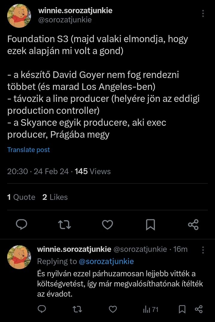 - Azt is felvetették, hogy az eredeti angol kifejezéssel élve snackable mini-epizódokat tudnának csinálni a szériához. Pont erre alkalmas egy ilyen high fantasy történet.Nem csoda, hogy ekkora shitshow lett a vége, ezeket a szerencsétleneket a saját középszerűségük mellett még az ág is húzta.