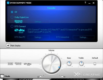 Viszont ITT találtam egy X-Fi Support Pack 1.0 (by Daniel Kawakami) nevű csomagot, ami frissített pár dolgot , és a Volume Panel-en megjelent az Encoder gomb, ezen belül pedig mind a DD Live, mind a DTS Connect opció is.