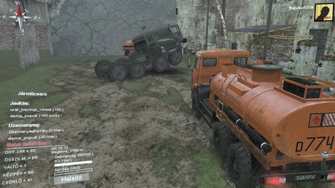 Sikerült megnyitni a garázst az after a hard path v5-ösön, nagyon sziszifuszi munkával, csak a gyári gépekkel. A garázspótot átraktam az Uralról a Krazra, abban több benya van, így el tudtam jutni a garázsig. Közbe minden járművet megtörtem és "megfürdettem", a K700-as mindenkit kihúzott szerencsére.