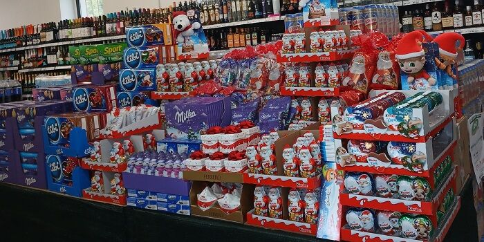 Már a Tesco is dugig van mikulással, de a Lidl-ben is ki voltak rakodva a karácsonyi dobozos sütik.