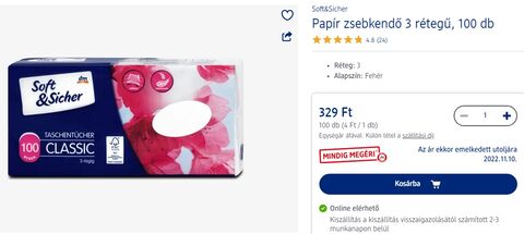 vettem Hárs 100-as papírzsebkendőt 439Ft-ért. elfogadható ár?